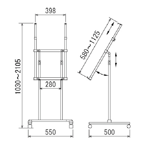 | 仕様 | 静止安全荷重:10kgまで キャスター付き 高さ調節可能 角度調節可能 |