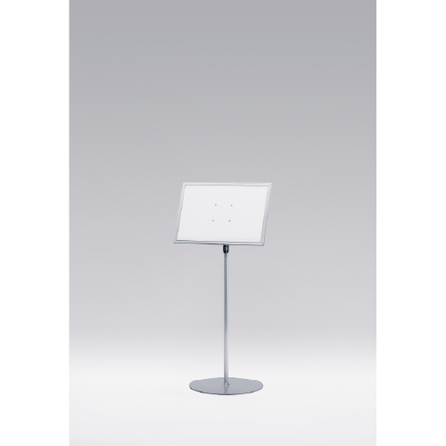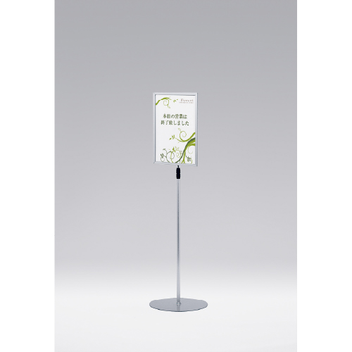 「PHポールサイン PH-214」は、A4タテの印刷物を付属の透明カバーにはさみこみ、パネル上部の溝から抜き差し可能なポスタースタンドです。A4ヨコに対応した「PHポールサイン PH-224」もあり、フードコートなどでよく見かけます。