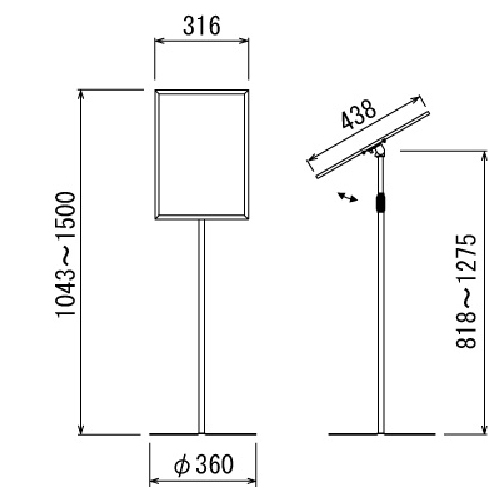 サイズのバリエーションも多く、省スペースで設置できるので、日替わりイベントの告知、館内・オフィス内の誘導サインなど幅広く使われています。その他、両面タイプ、高さ調整機能が付いたタイプや面板の角度調整ができるタイプなどがございます。