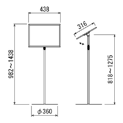 | 材質 | フレーム:アルミ押出材アルマイト仕上 面板:0.5mm透明PET/3mmアルミ複合板 ポール:アルミ押出材アルマイト仕上 ベース:スチール塗装仕上 |