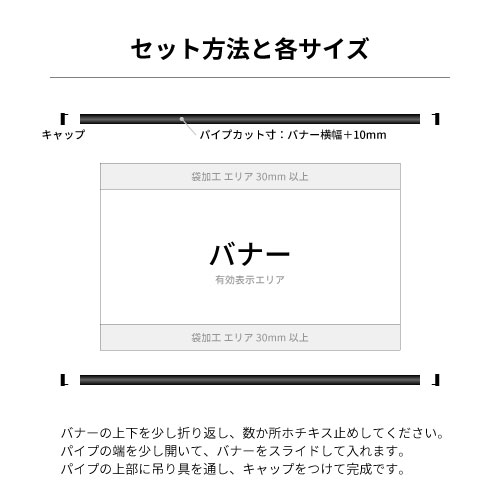 | 仕様 | バナー横幅+10mmがパイプの推奨カット寸法になります。 |