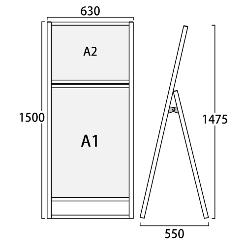 | 内寸 | 上部ポスターサイズ:A2ヨコ(W594mm×H420mm) 下部ポスターサイズ:A1タテ(W594mm×H841mm) |