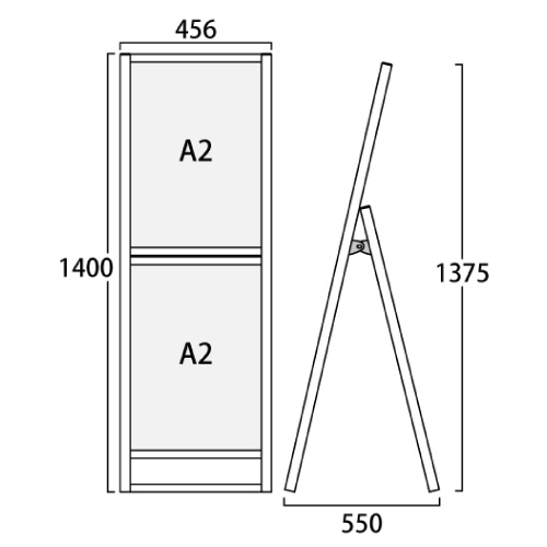 フラットオープンスタンド看板コンビ A2A2 片面 FOSKC-A2A2K シルバー