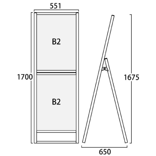 フラットオープンスタンド看板コンビ B2B2 片面 FOSKC-B2B2K シルバー