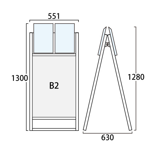 フラットオープンスタンド看板カタログケース付 B2 両面 FOSKK-B2R-G シルバー