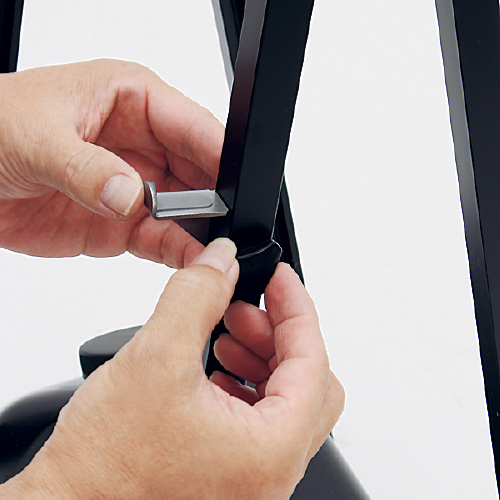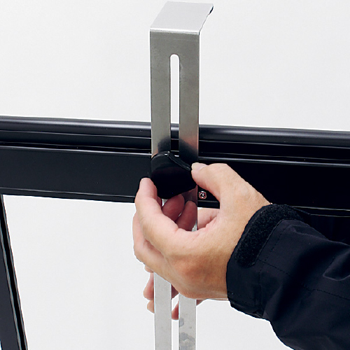 パネル受けをつまみネジで取り付けします。取付位置はパネルに合わせて6段階に調整できます。