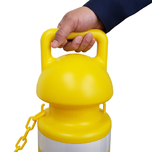 樹脂スタンドは、主に駐車場や駐輪場、工事現場など車や自転車、通行人が行き来する場所で案内や誘導を目的として設置されることが多く、一目見て目立つ色(イエロー、レッド、グリーンなど)の商品が多くラインナップされています。