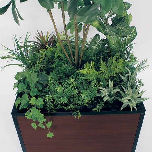 | 材質 | フレーム:アルミ押出材ブラックアルマイト仕上・アルミダイカスト塗装仕上 本体:3mmMDF木目紙貼り 装飾:造花・人工樹木 |