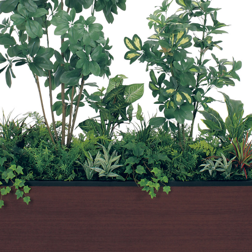 | 材質 | フレーム:アルミ押出材ブラックアルマイト仕上・アルミダイカスト塗装仕上 本体:3mmMDF木目紙貼り 装飾:造花・人工樹木 |