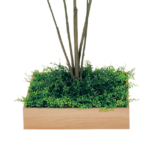 木目の薄型プランターがおしゃれなフェイクグリーンです。