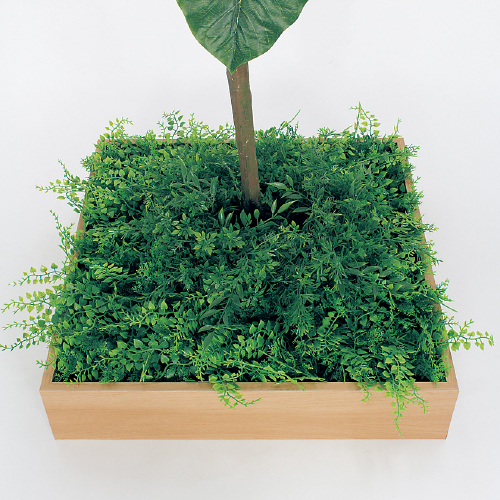 木目の薄型プランターがおしゃれなフェイクグリーンです。