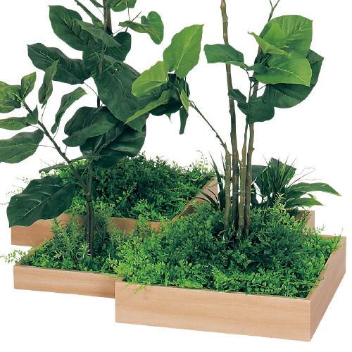 木目の薄型プランターがおしゃれな、連接タイプのフェイクグリーンです。