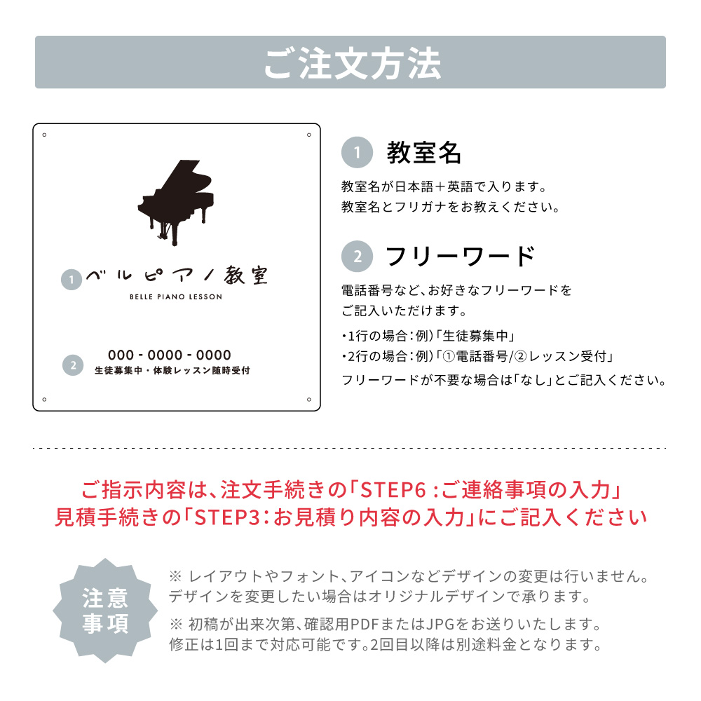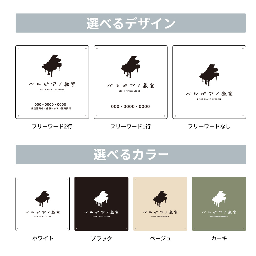 SignWebオリジナル【教室名など 文字差し替え可】 ピアノ教室看板 classic × プレート看板 450角 角R 穴5φ4カ所