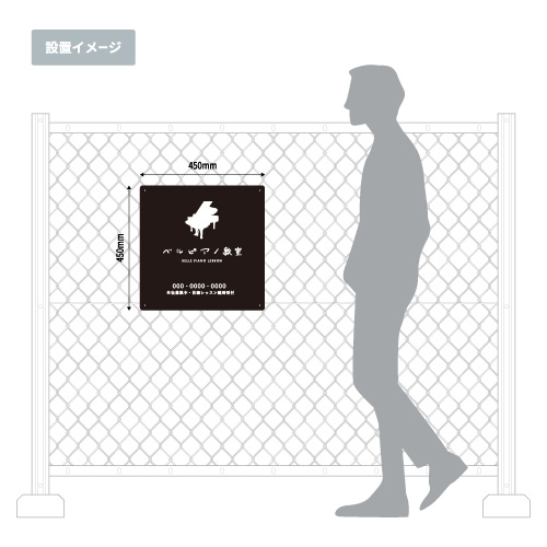 SignWebオリジナル【教室名など 文字差し替え可】 ピアノ教室看板 classic × プレート看板 450角 角R 穴5φ4カ所 商品説明