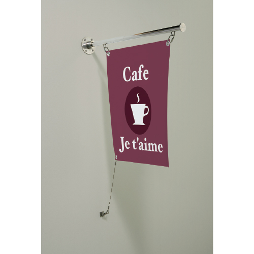 バナーパイプは、バナー(別名:旗、のぼり、横断幕、垂れ幕など)を掲示する際に必要となるパイプで、バナーの上部(下部)を縫製加工したり両面テープの付いた樹脂バーを貼り付けたりしてパイプにセットして使用します。