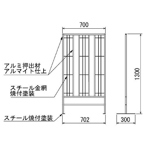 | 材質 | 本体:アルミ押出材ブラックアルマイト仕上・スチール金網焼付塗装 脚:スチール焼付塗装 装飾:造花 |