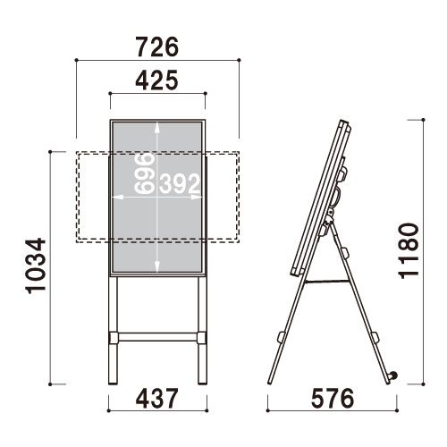 また、イーゼルは収納に便利な折りたたみ式になっており、背面側の脚部には運びやすいようキャスターが付いていますので、設置や移動が簡単に行えるのもポイントです。