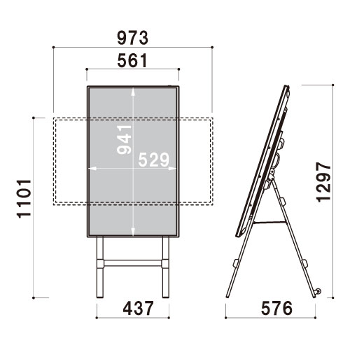 また、イーゼルは収納に便利な折りたたみ式になっており、背面側の脚部には運びやすいようキャスターが付いていますので、設置や移動が簡単に行えるのもポイントです。