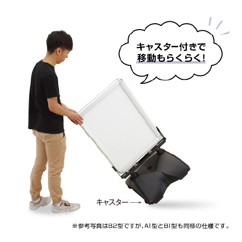 ポスター用スタンド看板 ローリングベース たおれん君 両面 B2 タンク:ブラック フレーム:艶有シルバー 表面カバー仕様